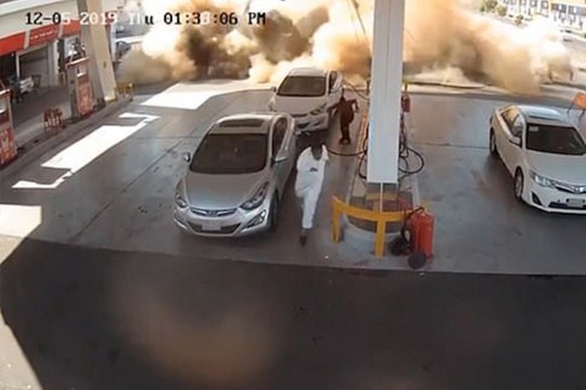A very unfortunate event in KSA at a petrol station. Terrifying moment petrol station's underground tanker EXPLODES as motorists fill up their cars in Saudi Arabia